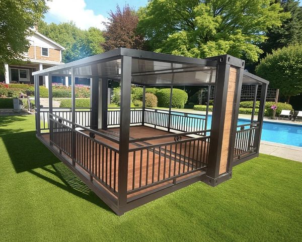 Nestled in a serene backyard oasis, the Cabaña seamlessly blends open-air leisure with a cozy shelter, featuring a half-deck and half-enclosed design. The spacious covered deck, perfect for lounging or outdoor dining, flows effortlessly into the finished sheltered area, where sleek folding glass doors create a versatile boundary. When fully opened, these doors merge the two spaces into a unified, airy retreat, allowing breezes to sweep through while maintaining an elegant, modern aesthetic. The enclosed section, adorned with comfortable furnishings and soft lighting, offers a shaded haven for relaxation, making the Cabaña an ideal spot for both lively gatherings and tranquil escapes.