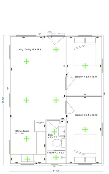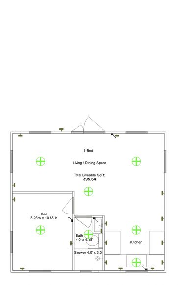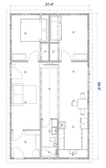 *Set'nGo™ ParkSides come without the bathroom/kitchen fixtures as a DIY-ADU. Floorplans above show fixtures as configured for RVADU.